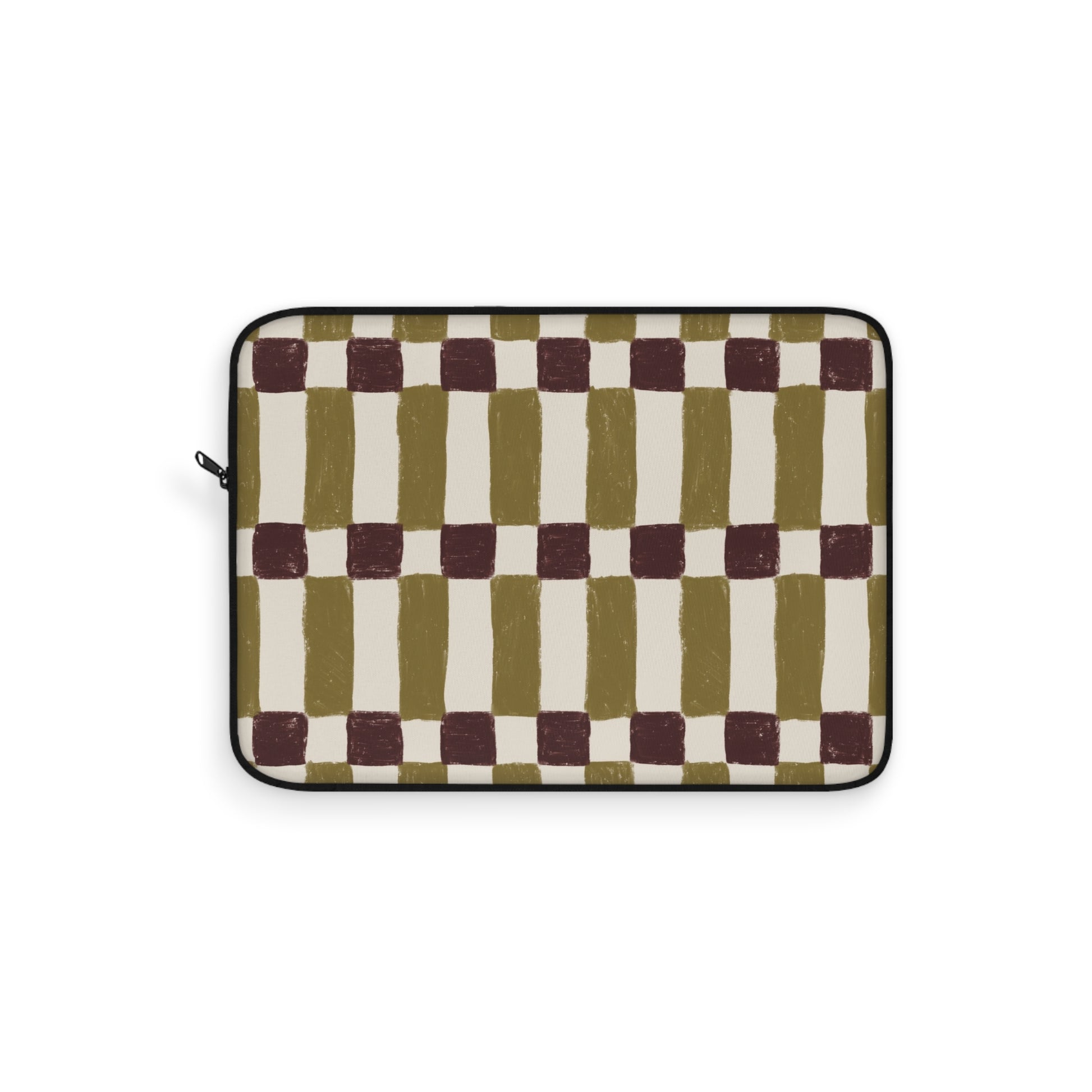 Checkerboard Olive Laptop Sleeve — Retro Hand-Painted Geometric Laptop Case